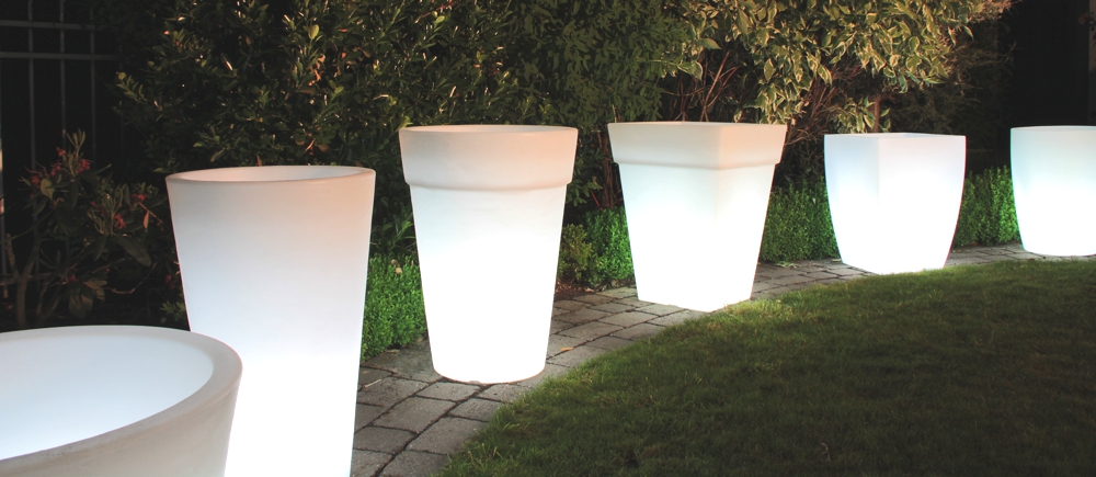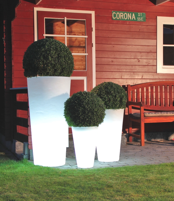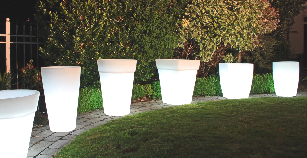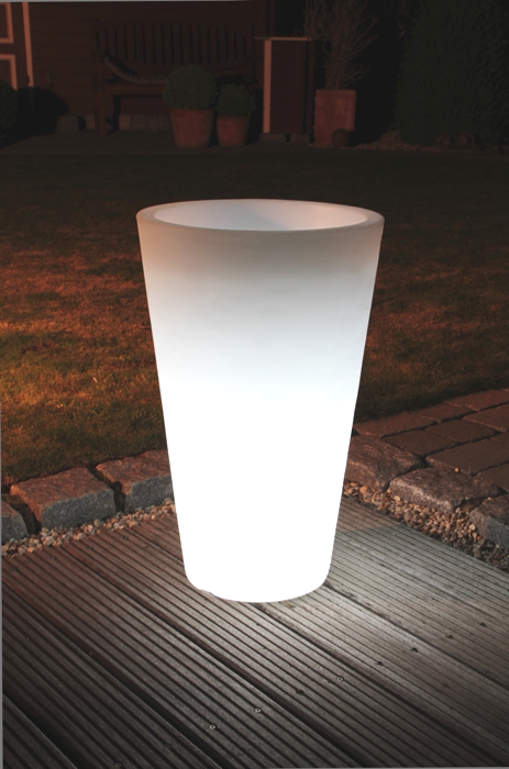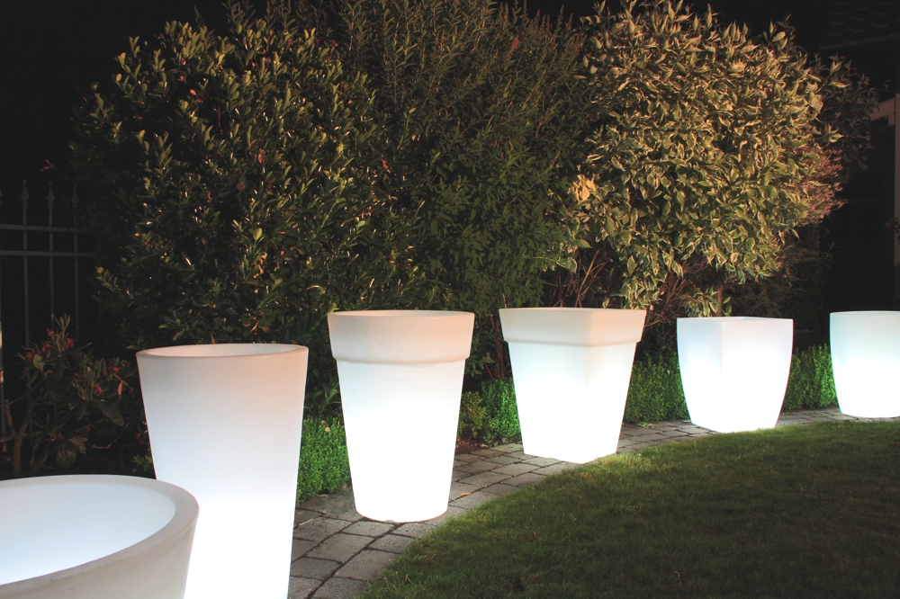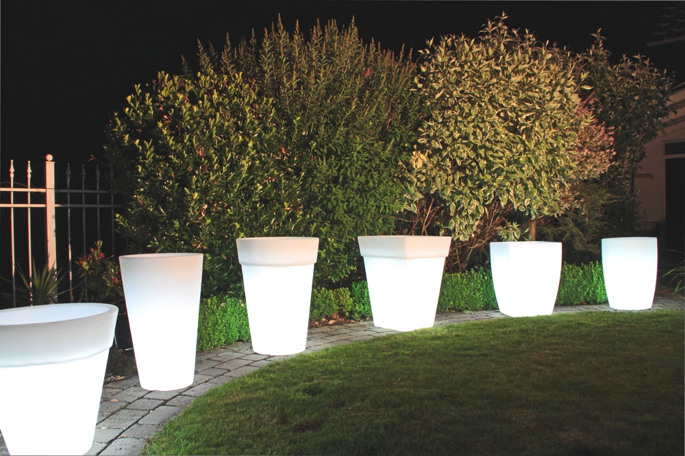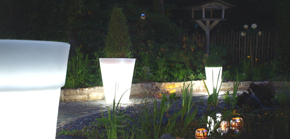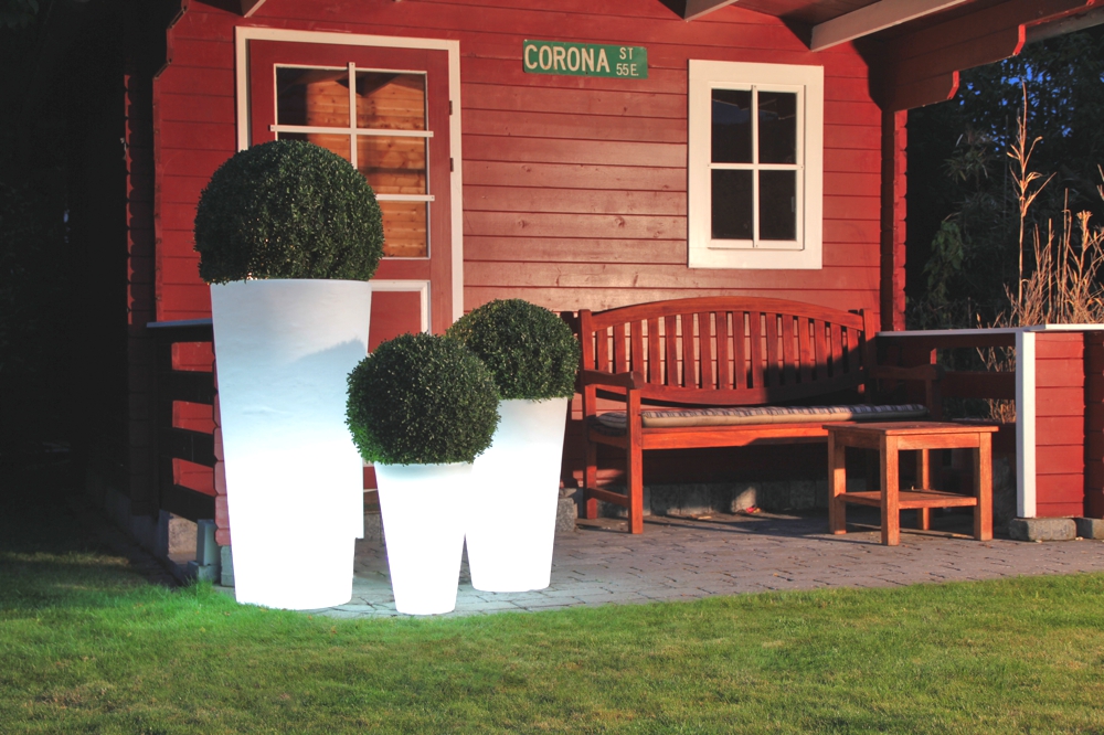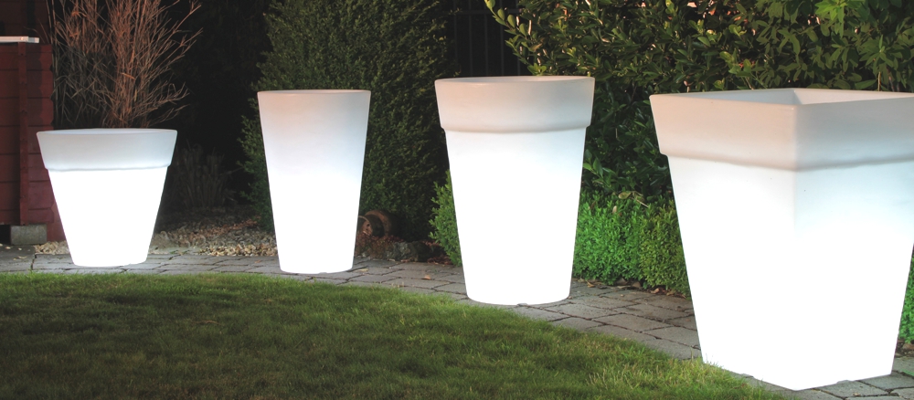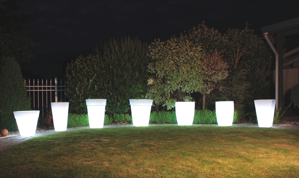 Ob auf der Terrasse, am Rand des Pools oder in Ihrer Wohnung; die 8 seasons Shining Pots rücken Ihre Pflanzen in das richtige Licht. Alle Töpfe dieser Kollektion verfügen über ein intelligentes Ablaufsystem, welches überschüssiges Gießwasser nach unten abfließen lässt. Eine natürliche Strukturierung macht die beleuchteten Blumentöpfe noch strapazierfähiger für den Außenbereich.