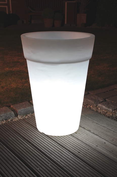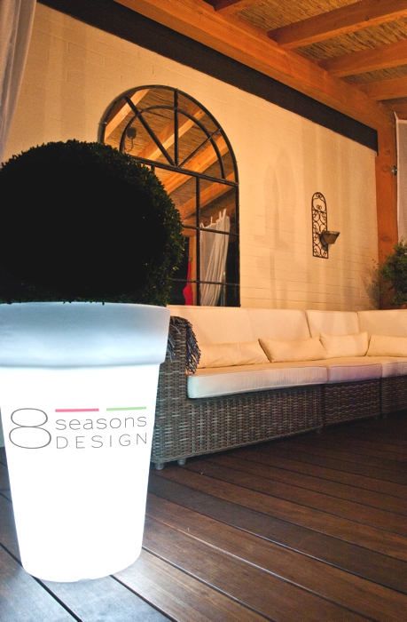 Ob auf der Terrasse, am Rand des Pools oder in Ihrer Wohnung; die 8 seasons Shining Pots rücken Ihre Pflanzen in das richtige Licht. Alle Töpfe dieser Kollektion verfügen über ein intelligentes Ablaufsystem, welches überschüssiges Gießwasser nach unten abfließen lässt. Eine natürliche Strukturierung macht die beleuchteten Blumentöpfe noch strapazierfähiger für den Außenbereich.